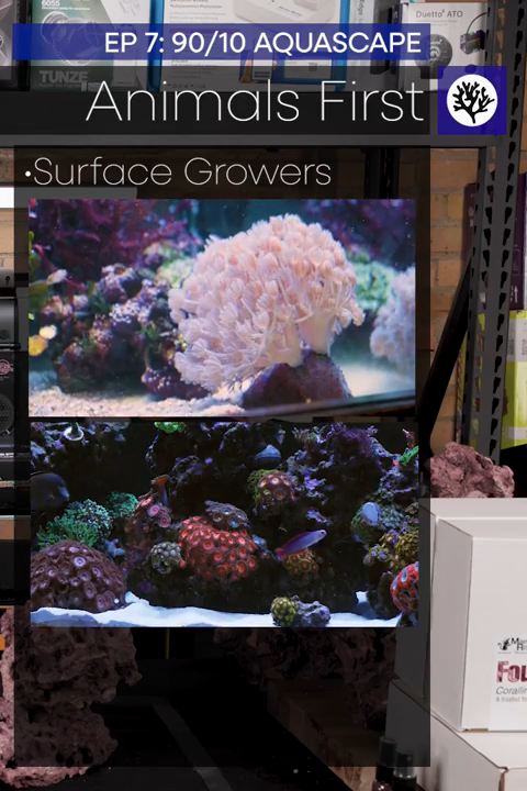 Soft corals like zoanthids, mushrooms, and pulsing Xenia tend to hug rock surfaces. Reserve flatter spots for those.