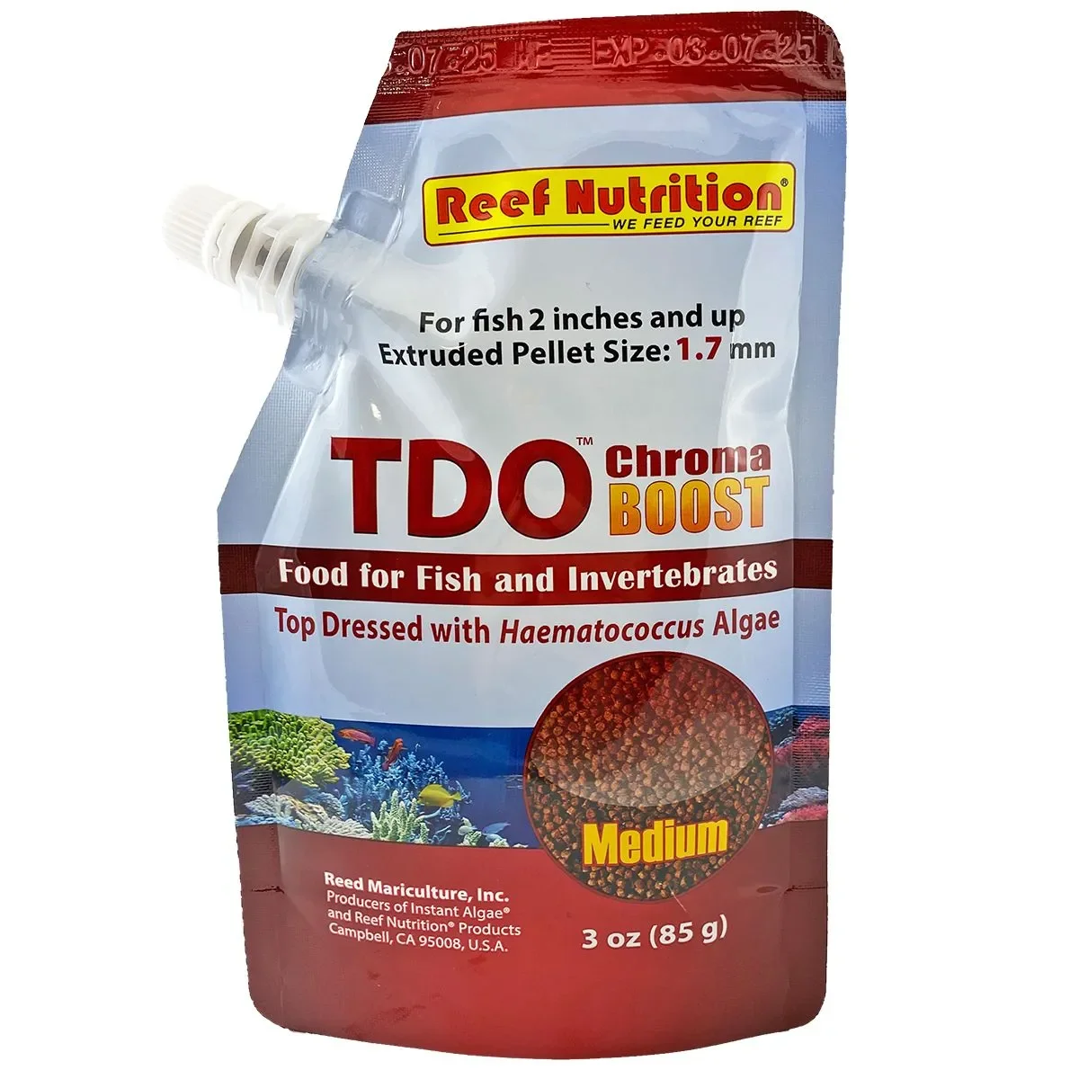 Diet: PE Mysis and other meaty frozen foods. Brine shrimp (frozen or alive). Small pellet training over time (TDO style pellets)