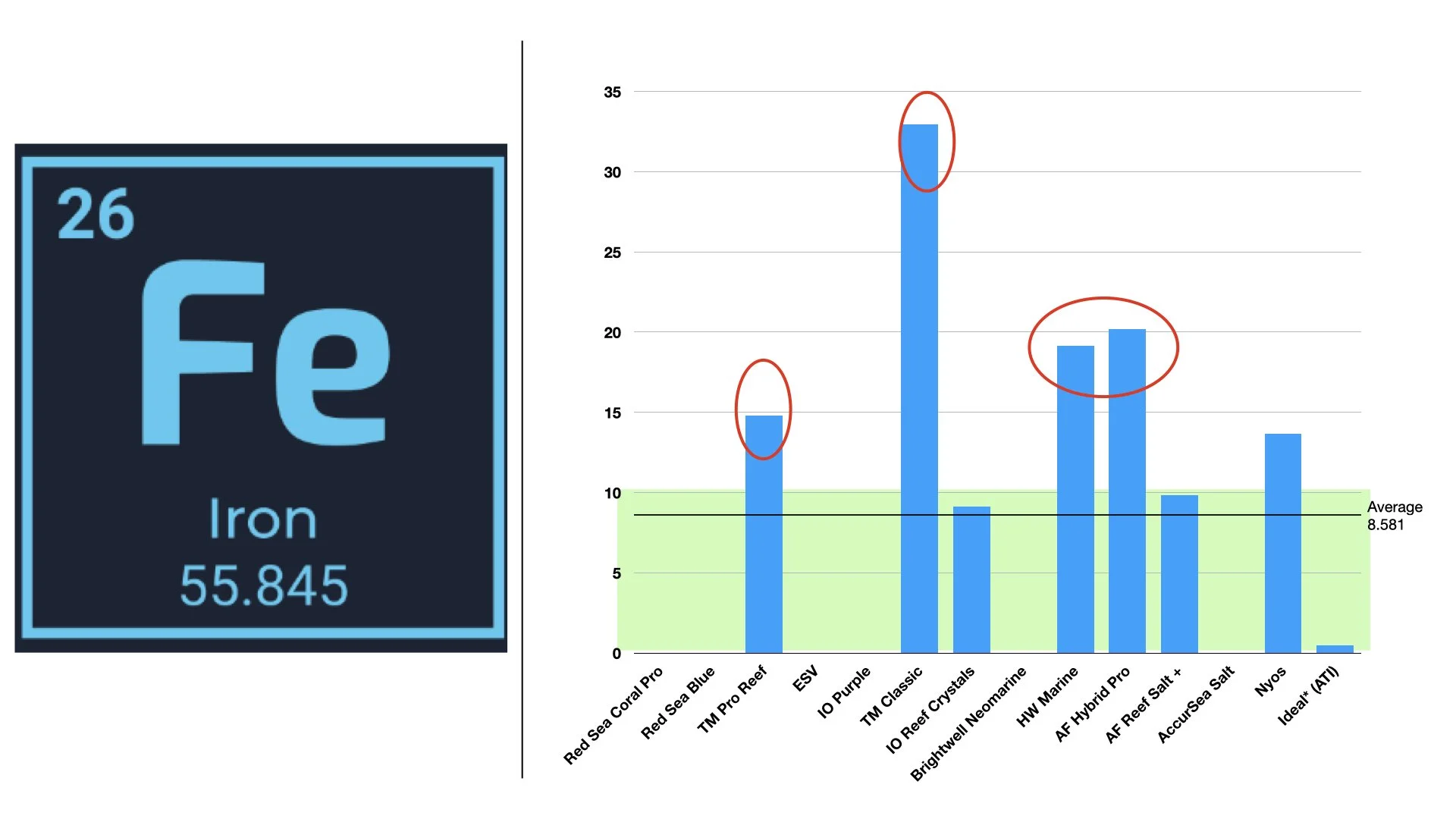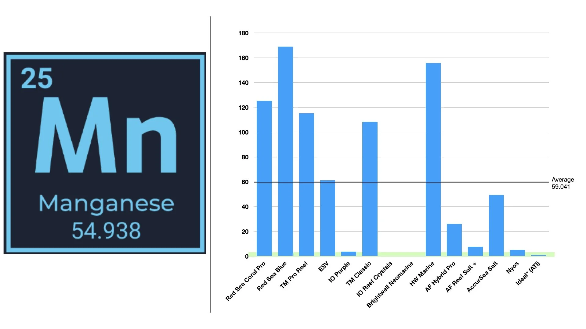 These elements varied a lot. Manganese is rapidly consumed by algae and macroalgae, and elevated manganese can be intentional in salts aimed at supporting growth. Iron was often undetectable because concentrations fall below detection limits. If you plan to grow macroalgae or run a refugium, these trace elements are worth paying attention to.