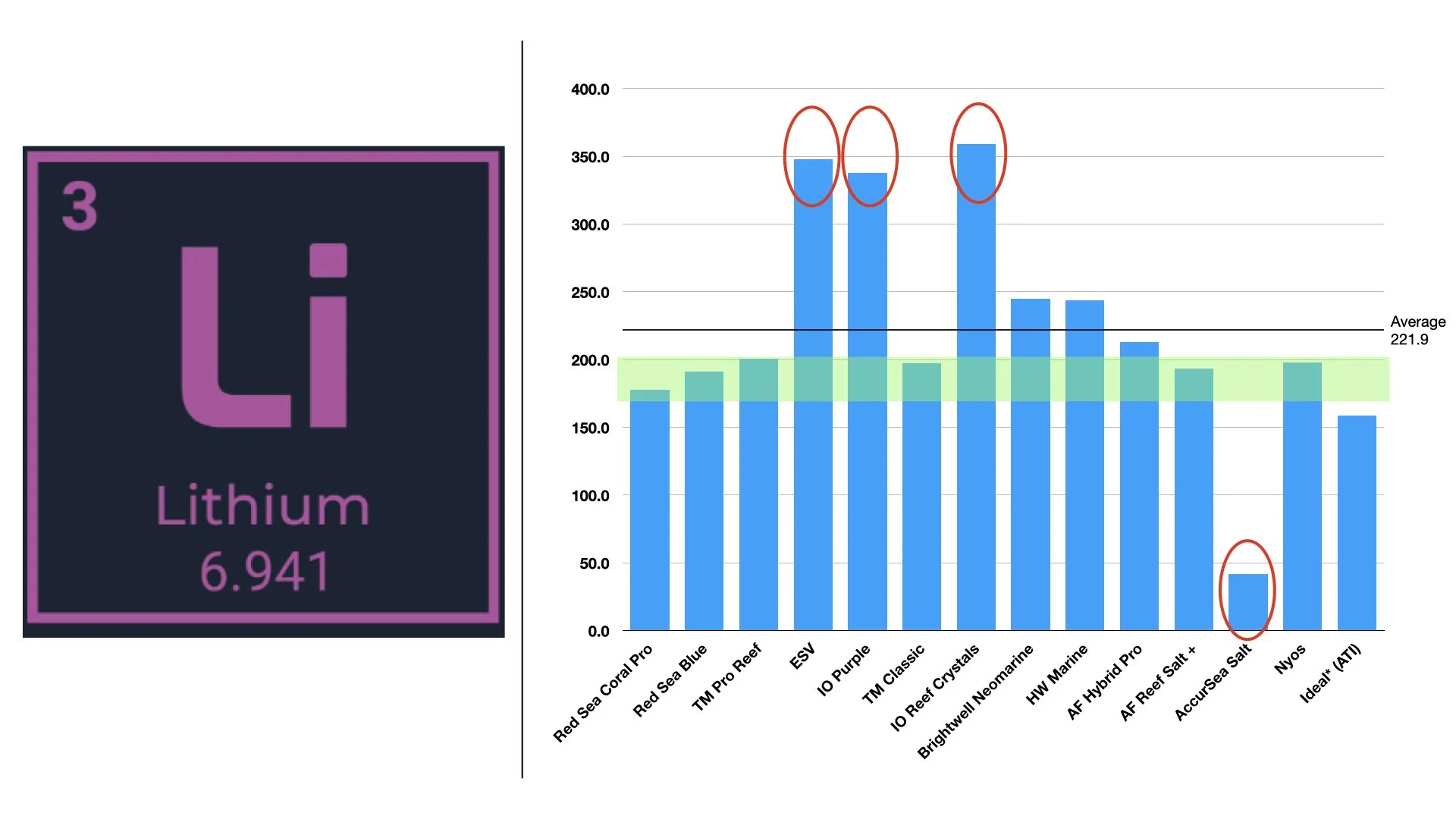Differences between salts can stem from raw material sources, manufacturing practices, and mixing consistency. Marine salt mixes are largely sodium chloride with added minerals. If a manufacturer sources lower-cost or less-purified base salts, impurities can show up as elevated lithium, barium, or other oddities.